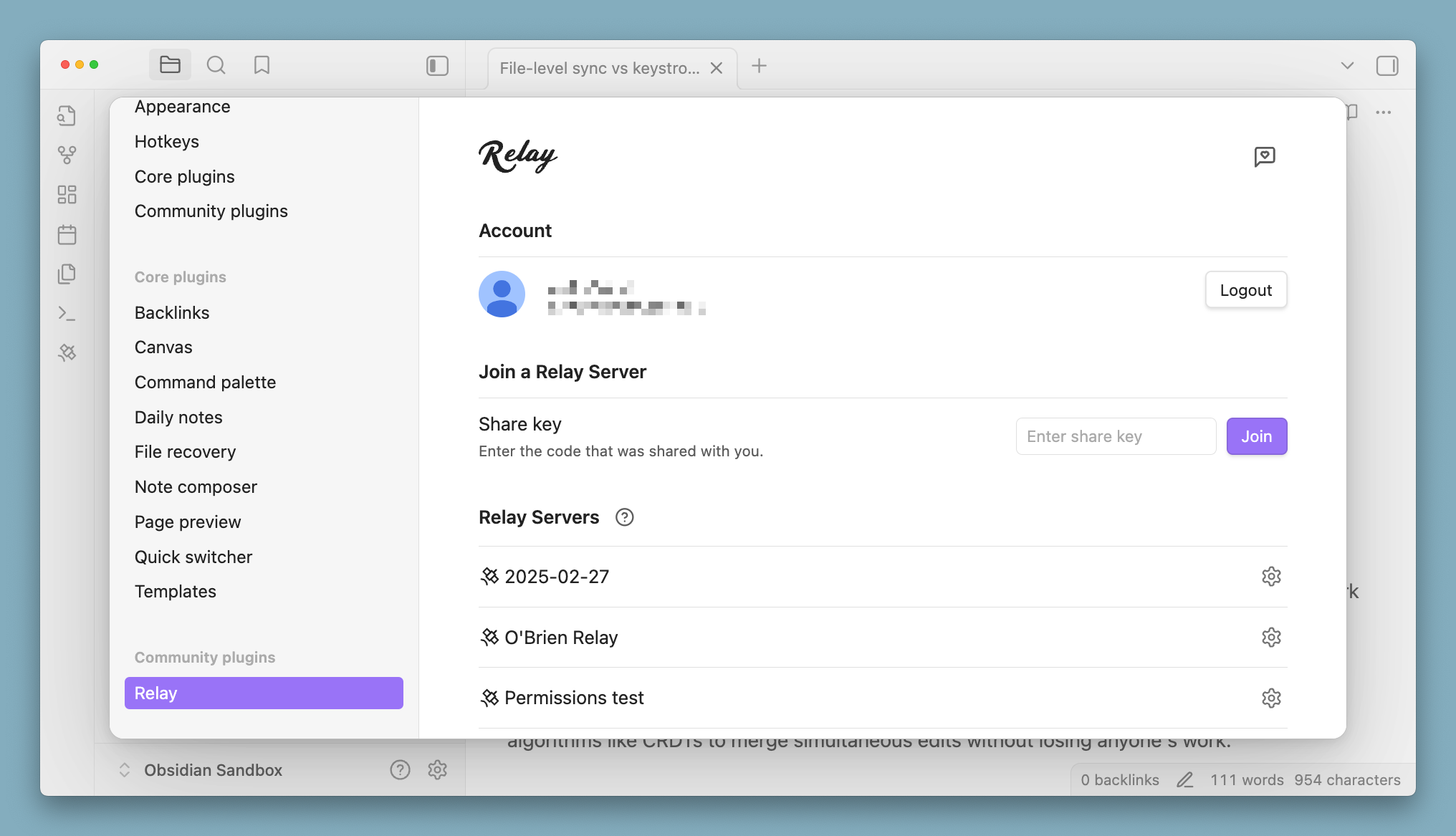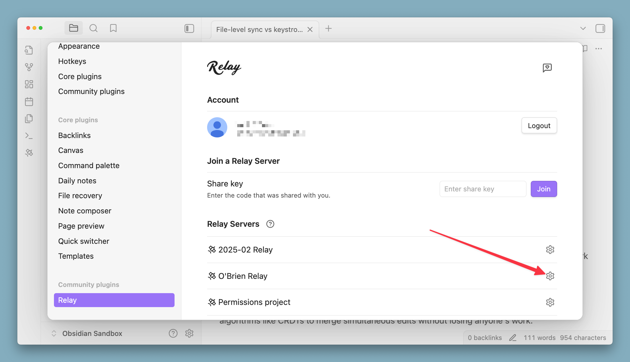 Access the Relay settings screen by clicking the Relay ribbon icon in the far-left sidebar.